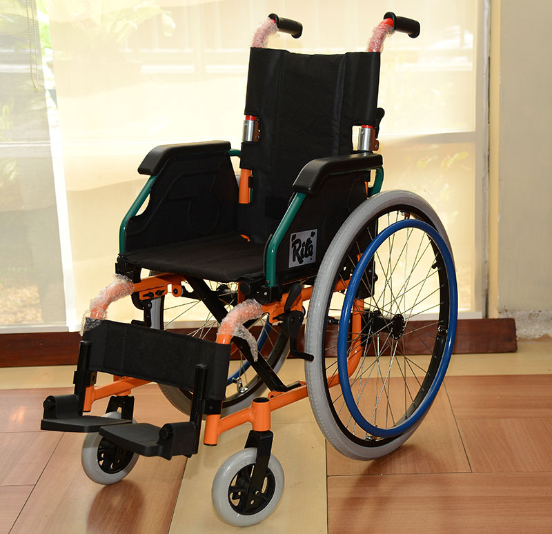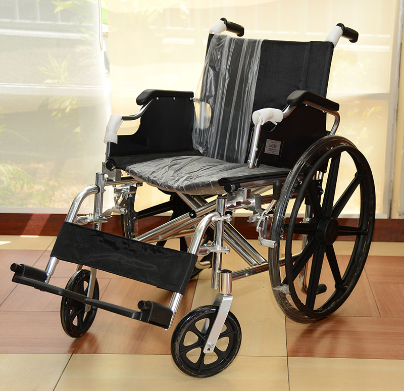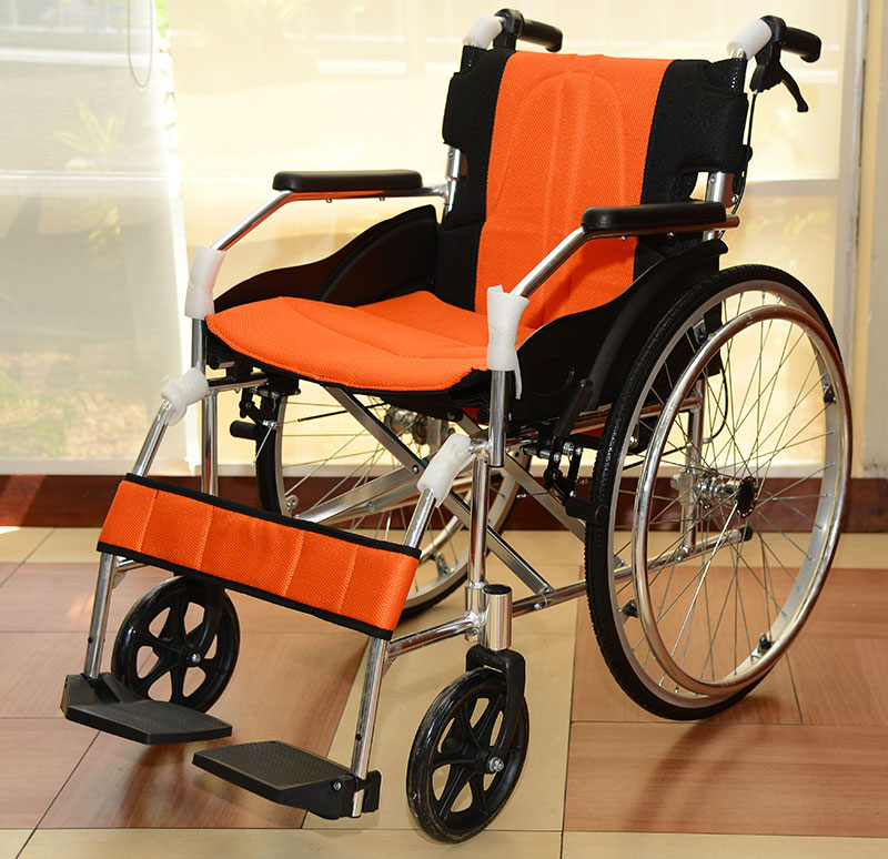 Aluminium framed wheel chair with detachable arm rests/foot rests